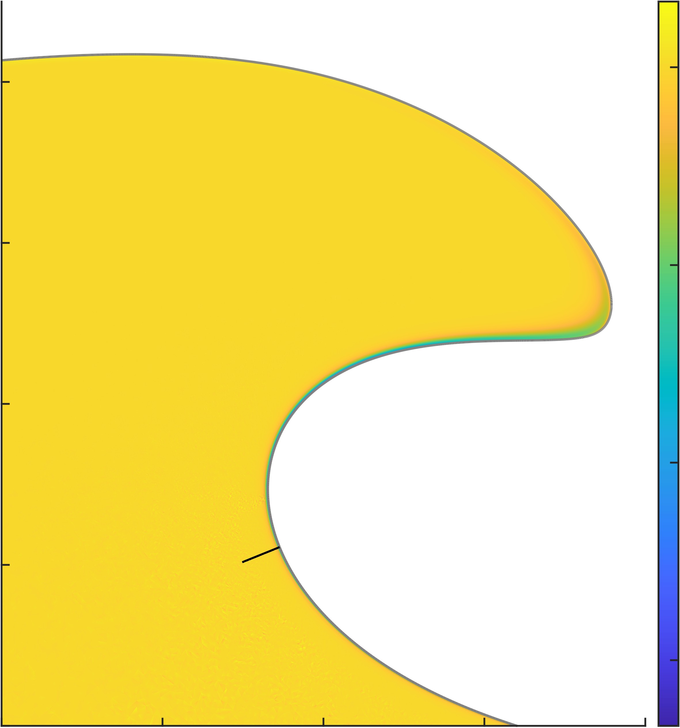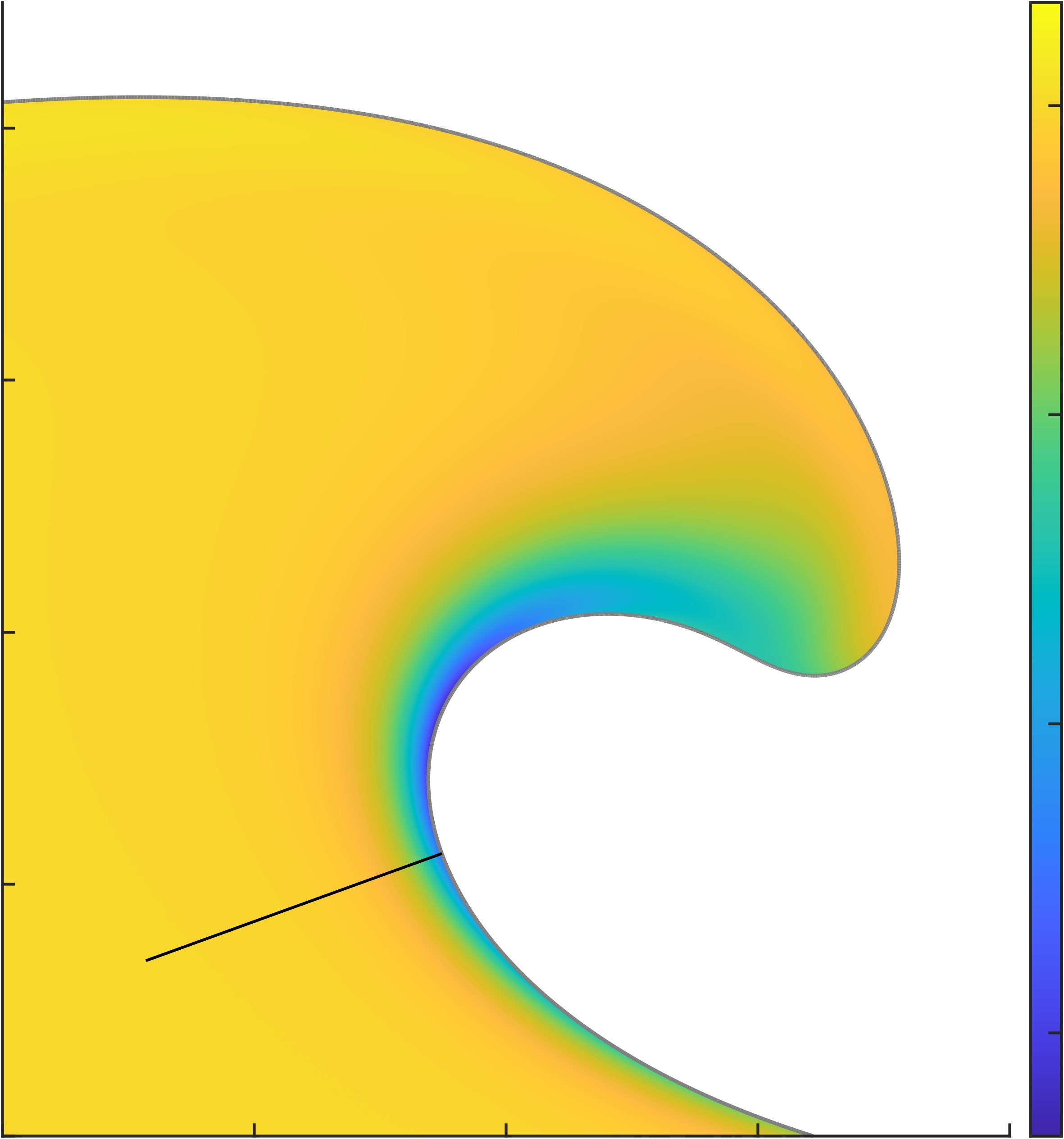 This observation has lead us to conclude that the effects of viscosity are not negligible only in regions where the size of the crest, let us call it \( s \), is comparable or smaller than the inverse square-root of the Reynolds number, so only if \[ s \approx \frac{1}{\sqrt{\mathrm{Re}}} \]